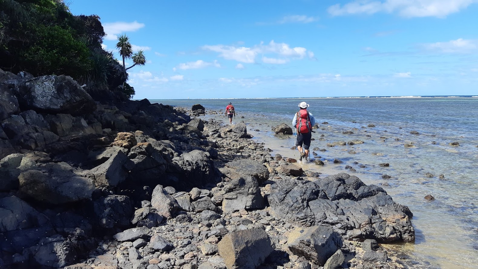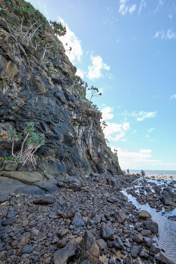 Un dernier grand platier nous mènera à notre point de départ. La traversée de la rivière Tromeo aura été facilitée par la marée devenue basse et un ensablement à son embouchure.