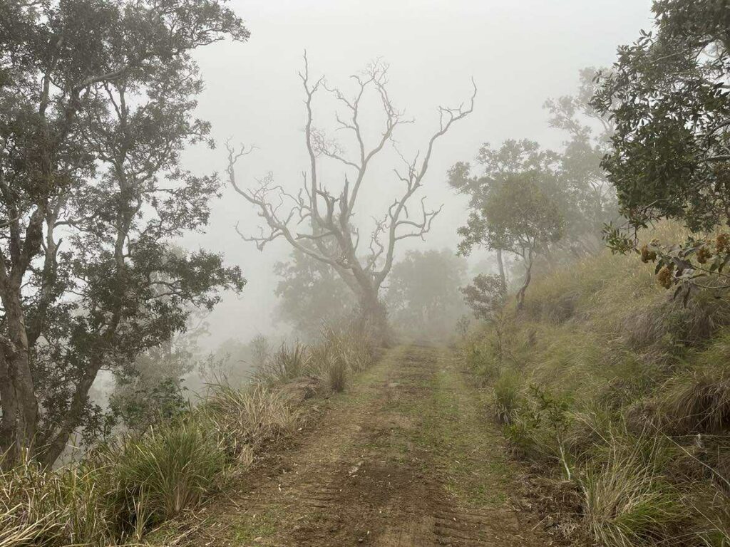 Un moment de magie a été ressenti lorsque, à l’approche des araucarias, les stratus sont apparus pour envelopper le bouquet d’arbres.