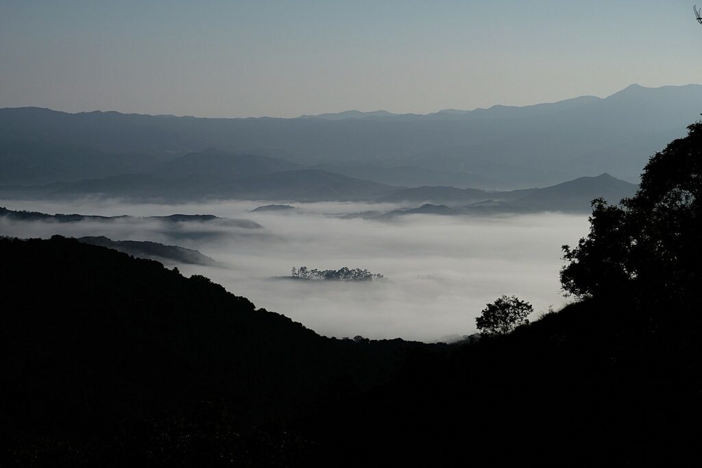 Le deuxième jour, départ aux aurores. Les vallées sont nappées de brouillard en cette période.